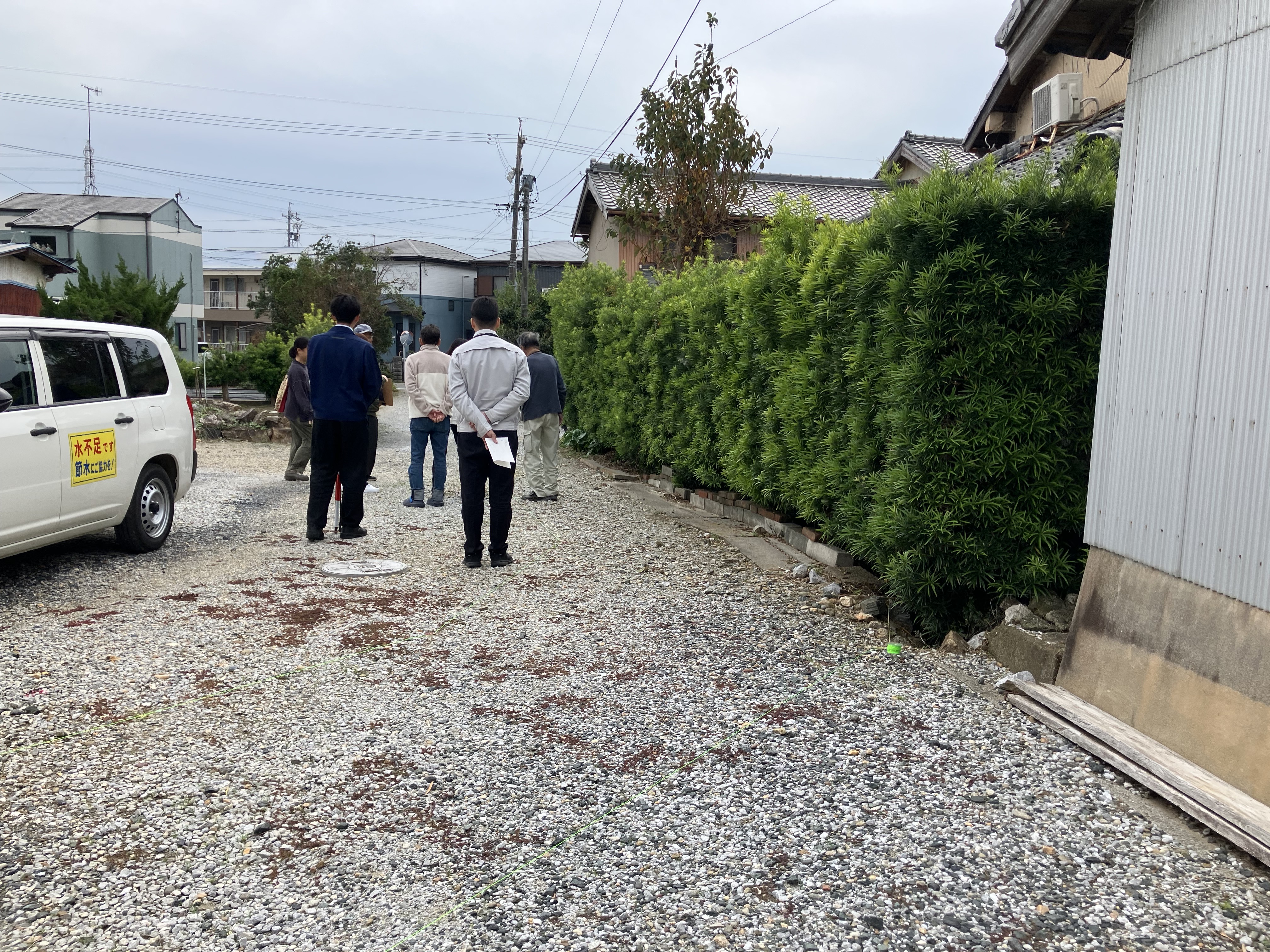 今回は道路部分の境界を確定するために土地家屋調査士の先生が隣地の方と市役所の方に