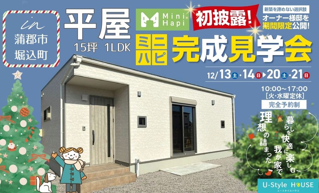 蒲郡・豊川・豊橋・田原・安城・西尾・碧南・岡崎・幸田でコンパクトな平屋を建てている U-Style HOUSE(ユースタイルハウス)上村建設株式会社です。 お気軽に見学会予約 ご相談ください。