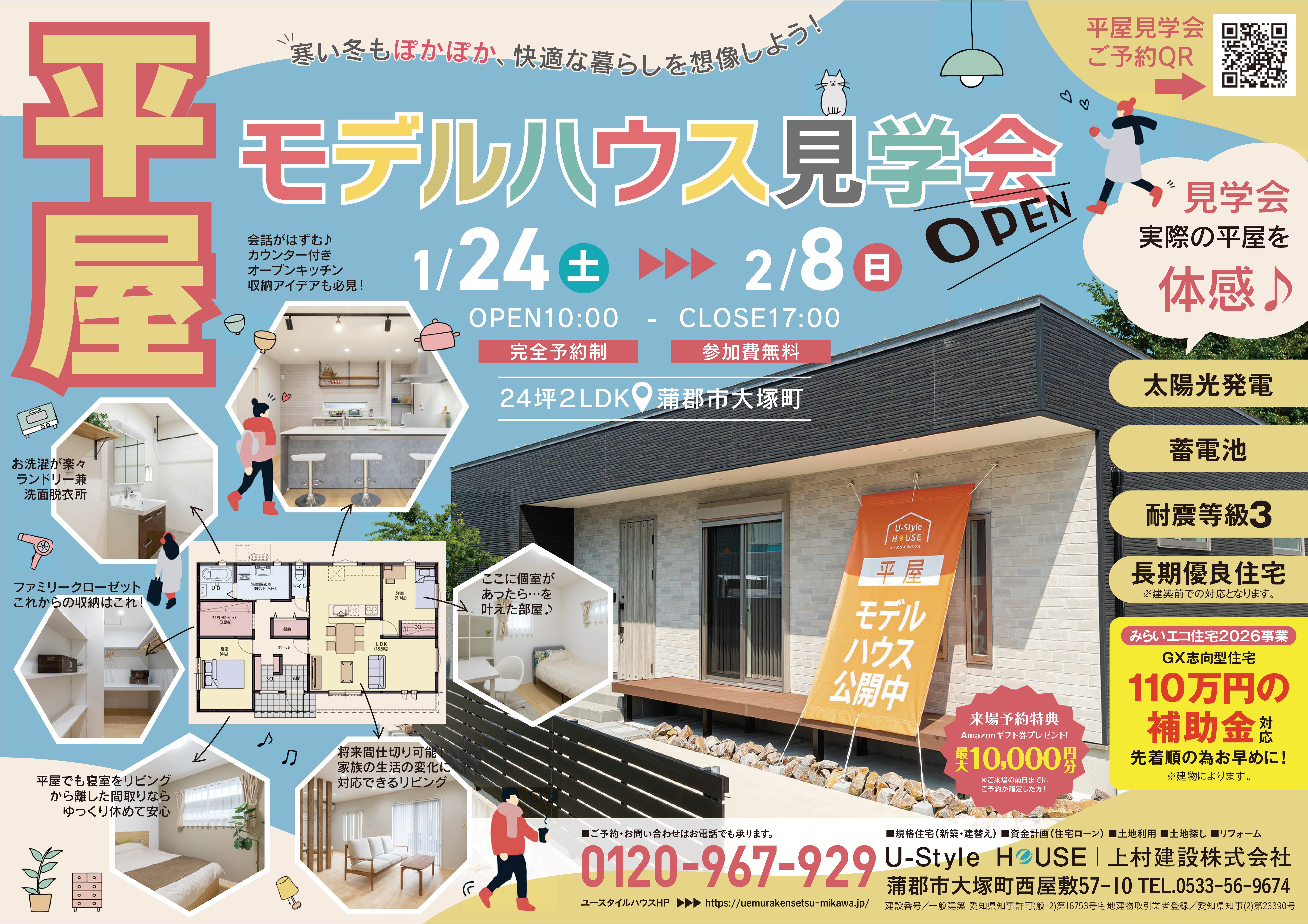 ☆1/31㈯・2/1㈰は、平屋のオーナー様邸完成見学会☆
